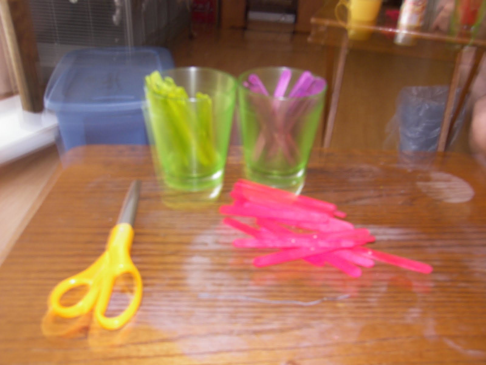 3 of the 4 colors I did last night. Remember, your sticks always come out lighter then your dye. Also if your dying a lighter color, like the green I used, you will have to use a whole lot of coloring to get anything decent.